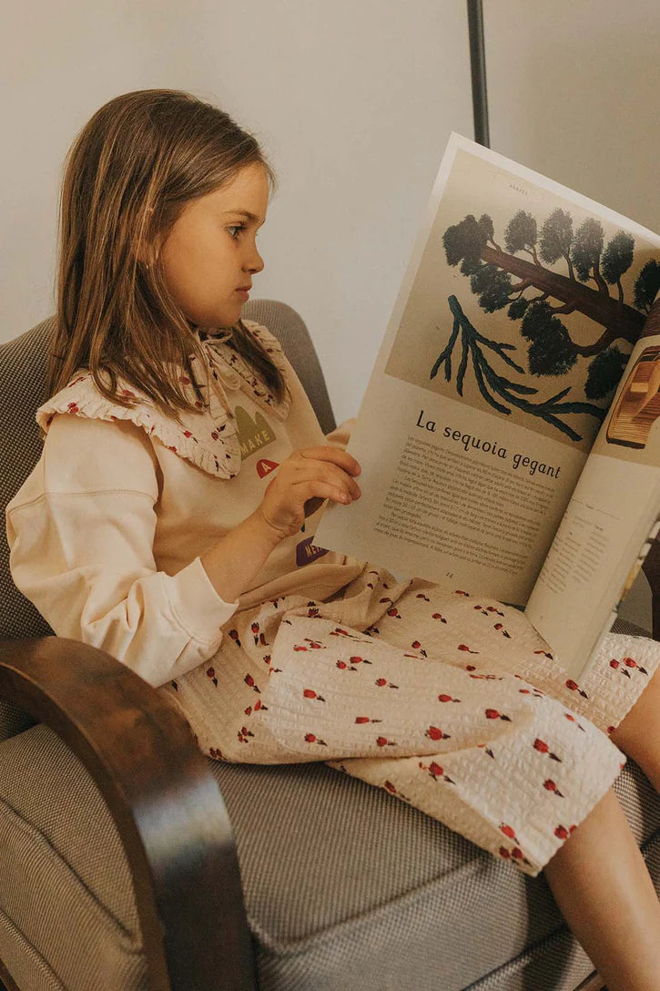 Soft culotte pants with 3/4 length and wide legs made in 100% Cotton. The pants has a hand-drawn floral print all over. The pants has an elastic inside waist. The pants has small pleats at the front below waistband that gives the pants some width. Wear them with a pair of sneakers or in summer with a pair of sandals. The pants has a loose and comfortable fit.