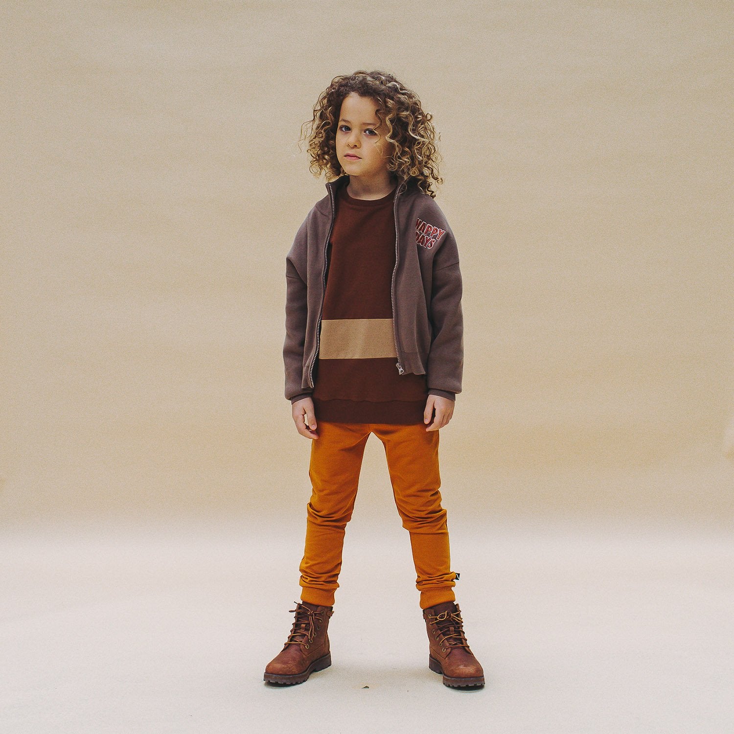 Happy Days cardigan is a grey based knitted cardigan with Happy Days embroidery and zipper on the front.