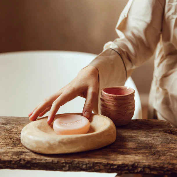 - Wrijf de bar tussen je handen en verdeel het schuim over je gezicht