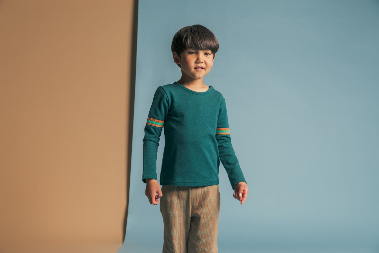 Groene longsleeve met strepen op de mouw.