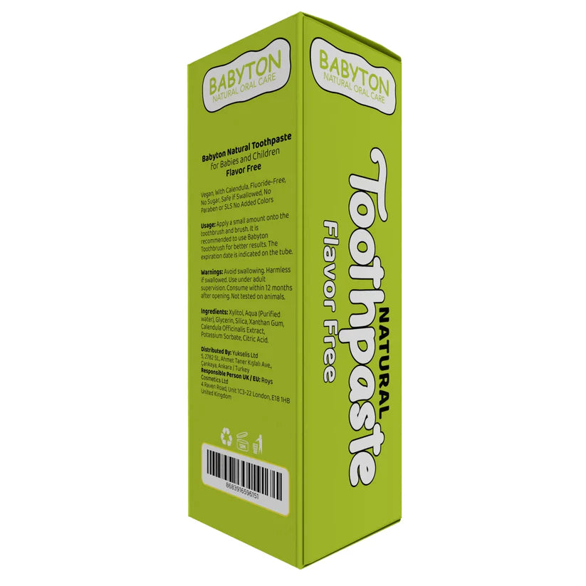Babyton tandpasta helpt kinderen op een natuurlijke manier om een goede poetsroutine te ontwikkelen. Met 40% Xylitol. Xylitol helpt tandbederf te voorkomen en remt schadelijke bacteriën. Calendula kalmeert het tandvlees, vermindert ontstekingen en bevordert de genezing van kleine irritaties in de mond. Vrij van suiker, fluoride, SLS, conserveermiddelen en parabenen. Kan veilig ingeslikt worden. Geschikt voor kinderen vanaf 6 maanden.